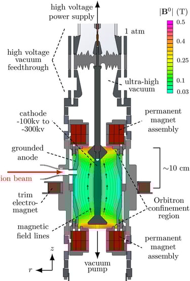 Our first peer-reviewed paper on the Orbitron is out! This article begins with the principle of operation of the Orbitron and then describes the experimental setup, including the high-voltage components, magnets, vacuum system, and various other subsystems. On the plasma physics side, it covers the diagnostic methods, the co-confinement of electrons and ions, as well as a brief discussion of the simulation results and future work toward achieving high fusion reaction rates.